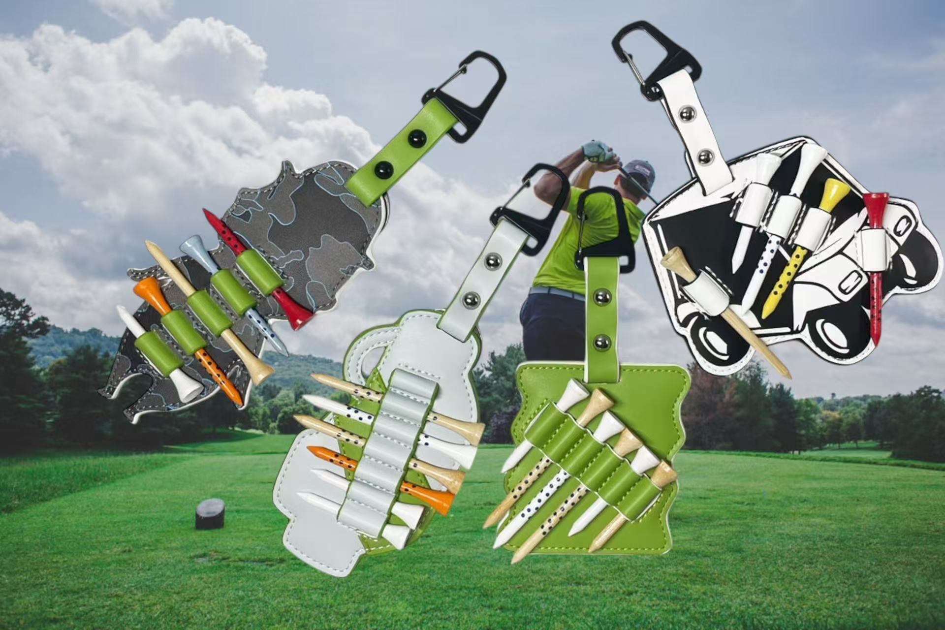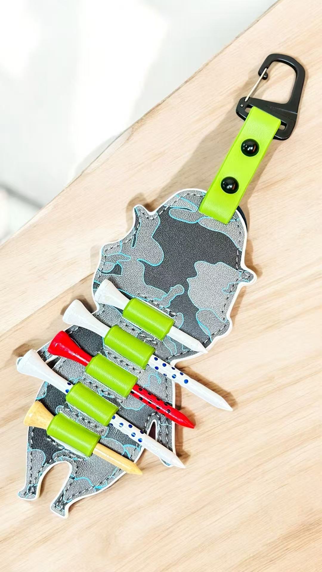 【ハッピーサマーキャンペーン5%OFF】ゴルフティーホルダー ゴルフティー収納 GOLFラウンド用品 ゴルフアクセサリー 高品質 耐久性 カラビナ付き 丸リング付き ティー5,6本収納 木製ゴルフティー用